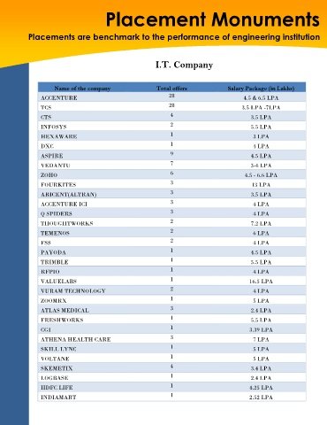 Name of the company Total offers Salary Package (in Lakhs)
