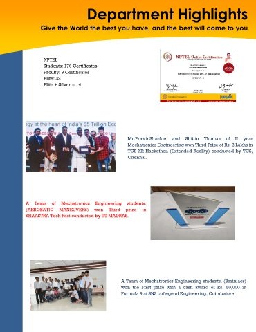 Mechatronics Engineering won Third Prize of Rs. 2 Lakhs in